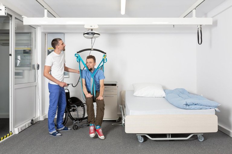 Podnośnik sufitowy Luna IPx4 służy do przenoszenia i podnoszenia osoby niesamodzielnej w ośrodkach opieki, szpitalach, DPS-ach, ZOL-ach, a także w opiece domowej.